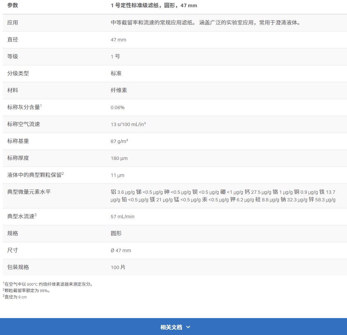 Whatman 1 号定性滤纸是使用广泛的标准级中等流速纤维素滤纸;常规实验室应用、定性分析分离和澄清液体中使用广泛的滤纸。它们是中等流速的标准级纤维素滤纸。