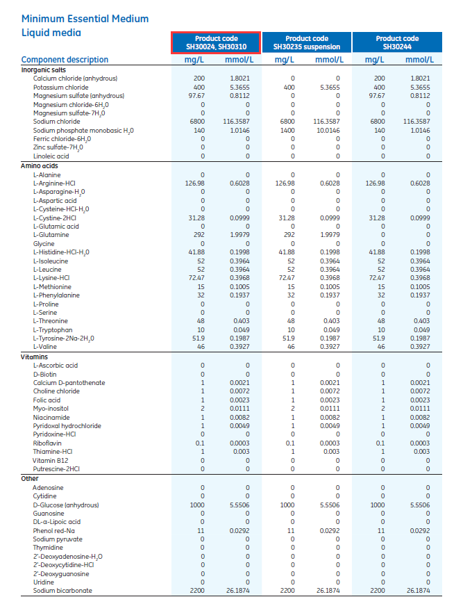 HyClone MEM 原材料的成分均通过了严格的质量控制测试筛选,以确保批次间的一致性。MEM 液体培养基产品已使用纯化水进行了水化,并经过了无菌过滤。