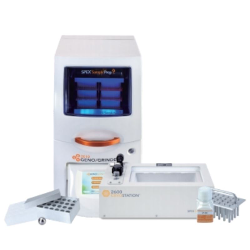 2010 Geno/Grinder® 组织研磨仪是一种自动化的高通量植物和动物组织匀浆器 和细胞裂解器。它配备了一个可调节的夹具,可容纳2mL至50 mL离心管或多达6个深孔滴定板的全系列样品瓶。